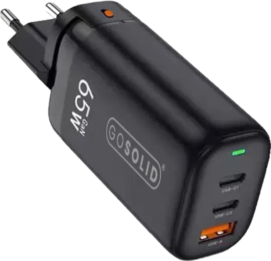 Rechargez facilement vos appareils USB-C compatible avec les appareils USB-C universels grâce au nouveau chargeur GO SOLID!. Si votre chargeur d'origine est usé, cassé ou perdu, ce chargeur GO SOLID! constitue un excellent remplacement. Avec une puissance de 65W et 3 ports (2x USB-C, 1x USB-A), il est pratique pour la maison, le bureau ou les déplacements.